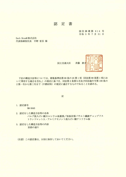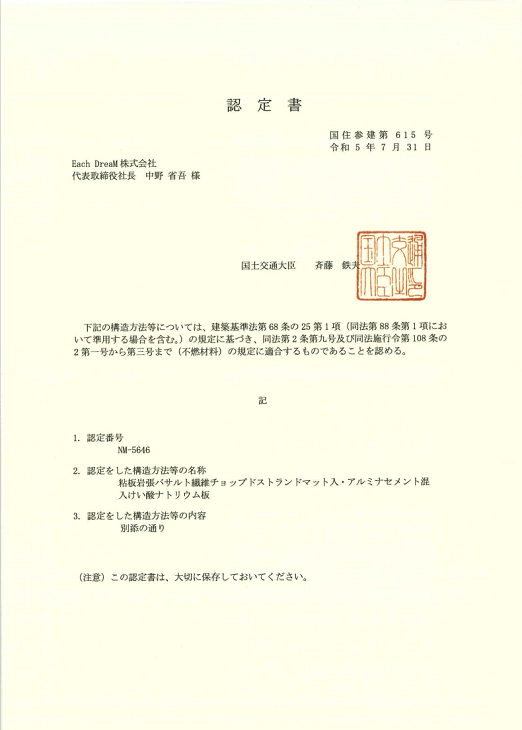 プレスリリース 天然石シートと天然石ボードの2つで、国交省の不燃材認定に合格 2023.04.07 Post Share Hatena Line RSS feedly note この記事のタイトルとURLをコピーする 弊社開発の天然石シートと天然石ボードの2つで、国交省不燃認定の発熱性試験(コーンカロリーメーター法)に合格しました。試験は2023年4月6日に実施され、本日速報で合格のご連絡を頂きました。 天然石シートの国土交通大臣 認定書 天然石ボードの国土交通大臣 認定書 Post Share Hatena Line RSS feedly note
